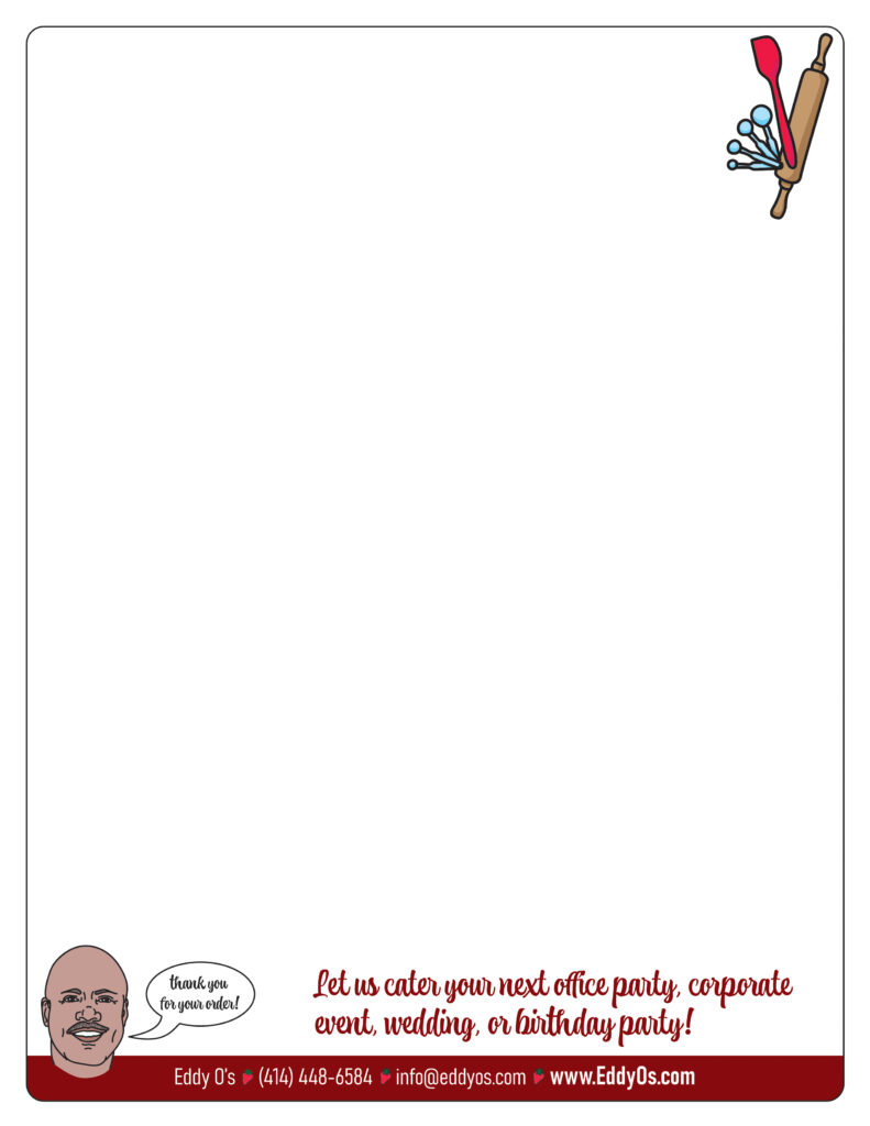 There are many perks to running a bakery—mainly that you’re surrounded by the best sweets all the time! But, when you’re focusing on your business, you don’t always have time to generate branding materials to advertise yourself and harmonize your public face. We stepped in to help Eddy O’s Cheesecake, Cookies and More do just that, and had so much fun doing it. We started with redesigning their logo by adding branding colors and illustrative elements, including a representation of Ed’s smiling face. The color scheme is warm and masculine, in honor of the brand’s namesake. Once the logo was set, we added it to collateral materials we also designed (which included a photo shoot of some of the sweets): menu pdf, postcards, rack cards, and even stickers.
